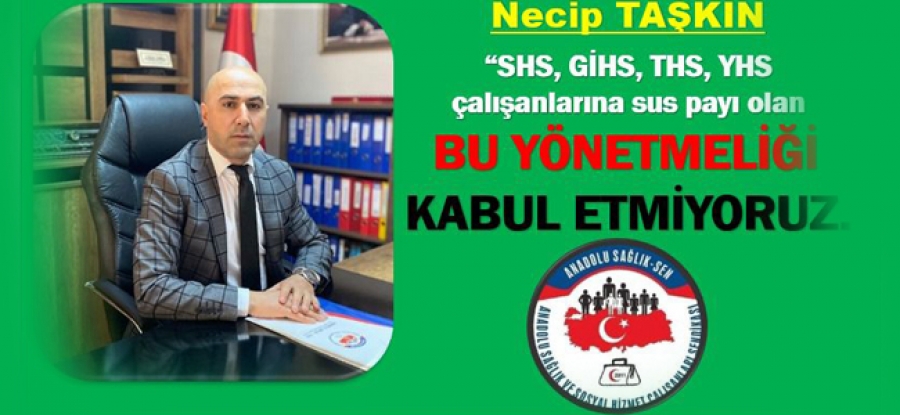 Anadolu Sağlık Sen Genel Başkanı Necip Taşkın, Sağlık Bakanlığı ve bağlı sağlık teşkilatlarında çalışanlara verilecek ek ödemenin usul ve esaslarını belirleyen Ek Ödeme Yönetmeliğinin tabip dışı diğer sağlık çalışanlarını memnun etmediğini söyledi.